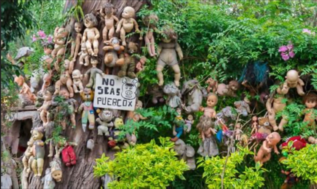 This is an island of the coast of Mexico that is populated with abandoned dolls!